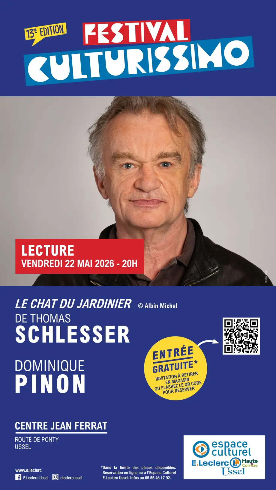 Quel bonheur de le retrouver au Centre Jean Ferrat à Ussel pour une lecture du nouveau roman de Thomas Schlesser, le très attendu chat du jardinier. Après le succès phénoménal des yeux de Mona, fascinant roman vendu à plus de 350 000 exemplaires et traduit dans le monde entier, l’auteur, historien de l’art, nous revient avec un hymne à la poésie. Dans ce texte qui vous donnera envie de relire les plus grands poètes, un jardinier hypersensible se lie d’amitié avec une professeure de français à la retraite. Une déclaration d’amour aux mots à ne surtout pas manquer !