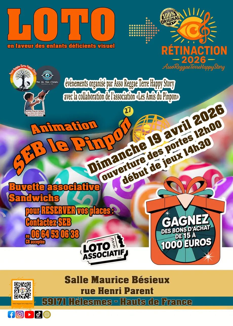 Nous avons le plaisir de vous informer que le premier LOTO SOLIDAIRE se tiendra le 18 avril 2026 salle