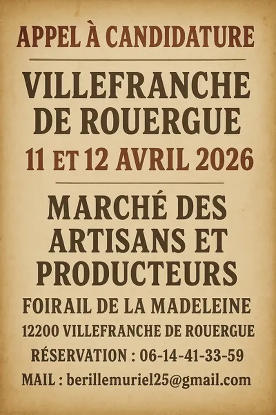Vide Grenier du Comité des fêtesLe 29/03/2026Villefranche-de-RouergueRéservation au 06 73 41 96 33 (Merci d'appeler aux heures des repas)