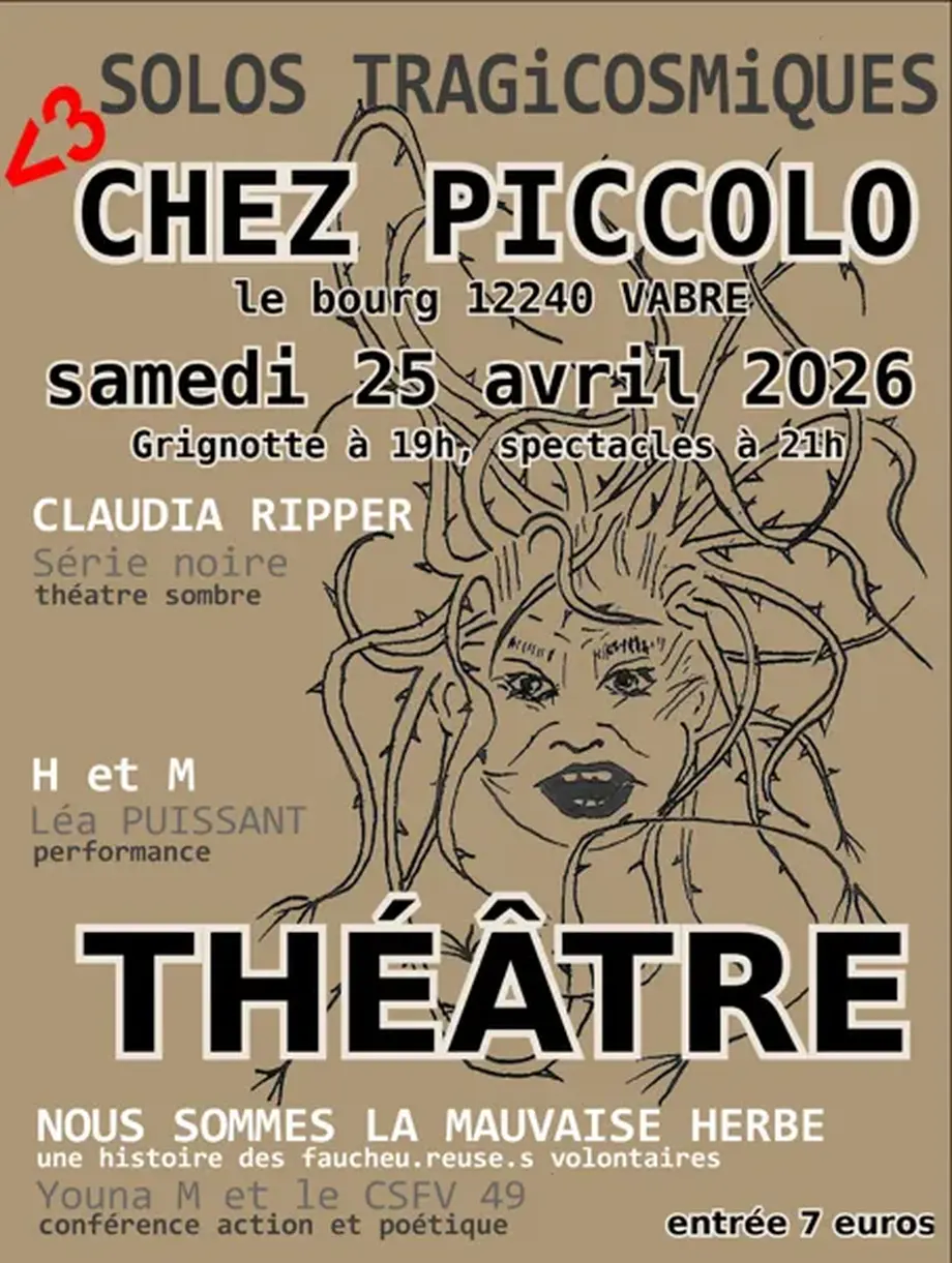 Théâtre "Solos Tragicosmiques" chez Piccolo à Vabre-Tizac