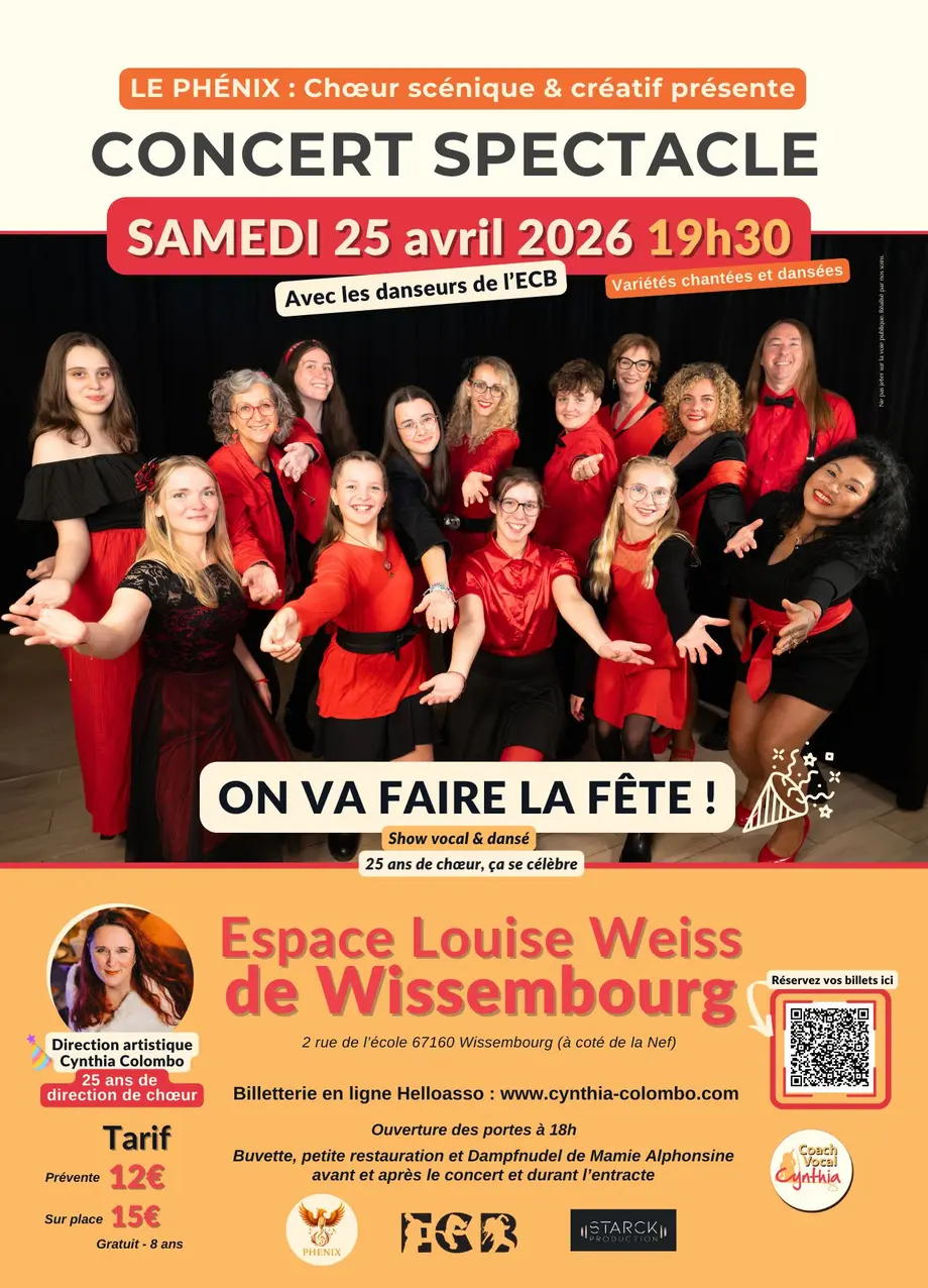 Un concert tout public, avec entracte, mêlant chant, corps et émotion, porté par l’énergie collective du chœur scénique et créatif Le Phénix, sous la direction artistique de Cynthia Colombo. Avec les danseurs de Sebastien : L'ECB de Betschdorf.